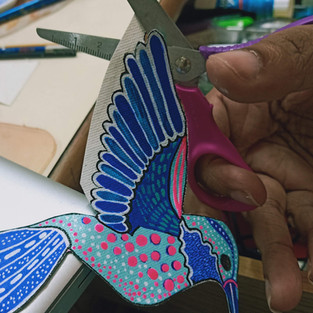 Recently, I was working on an exhibition piece where I needed to make a decision to place either a bird or some birds in the painting. Sometimes I have days where I just can't see or feel how the art piece should pan out so I create some cut outs to see how it would look on the painting. After long deliberation and feedback from an artist mentor, it was decided a single bird was sufficient. Happy Days! :)